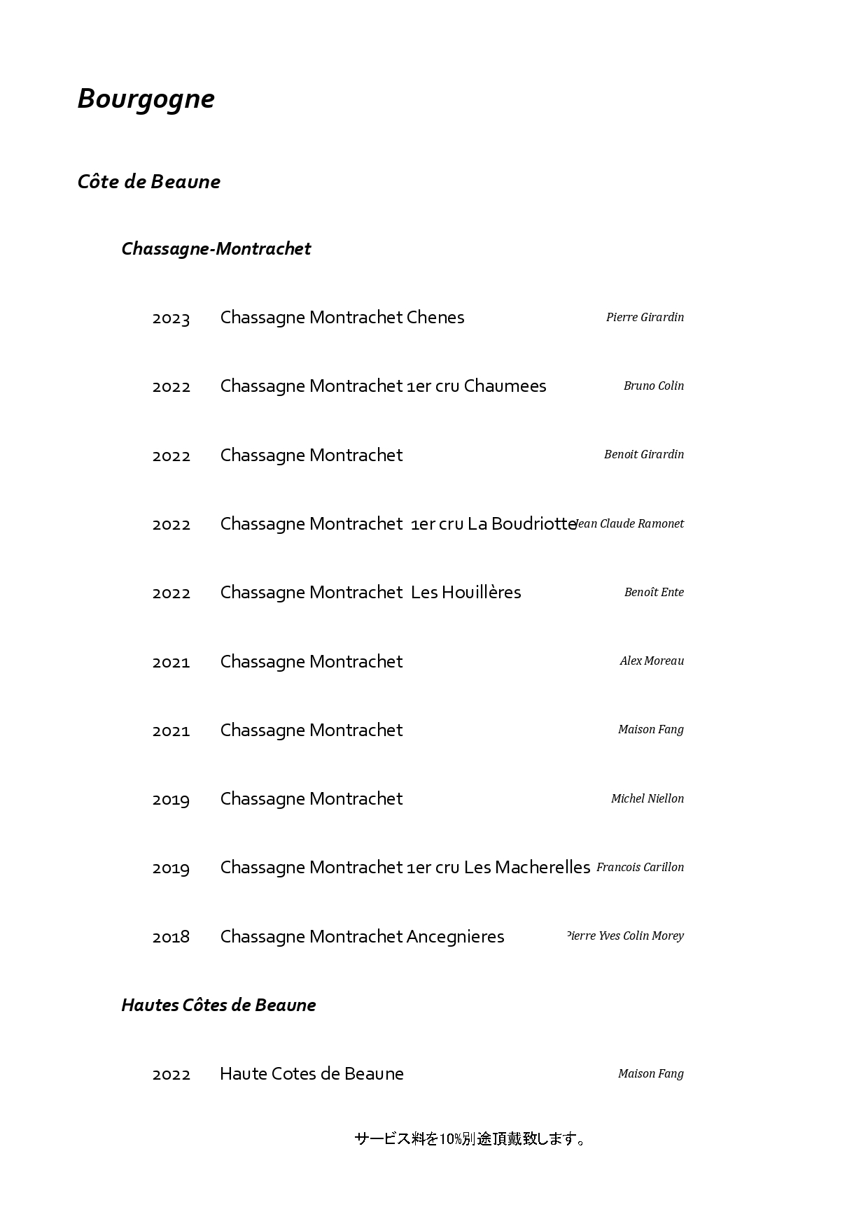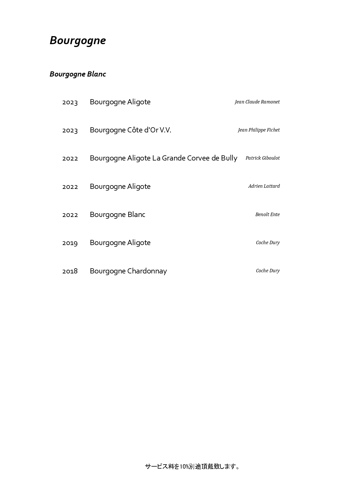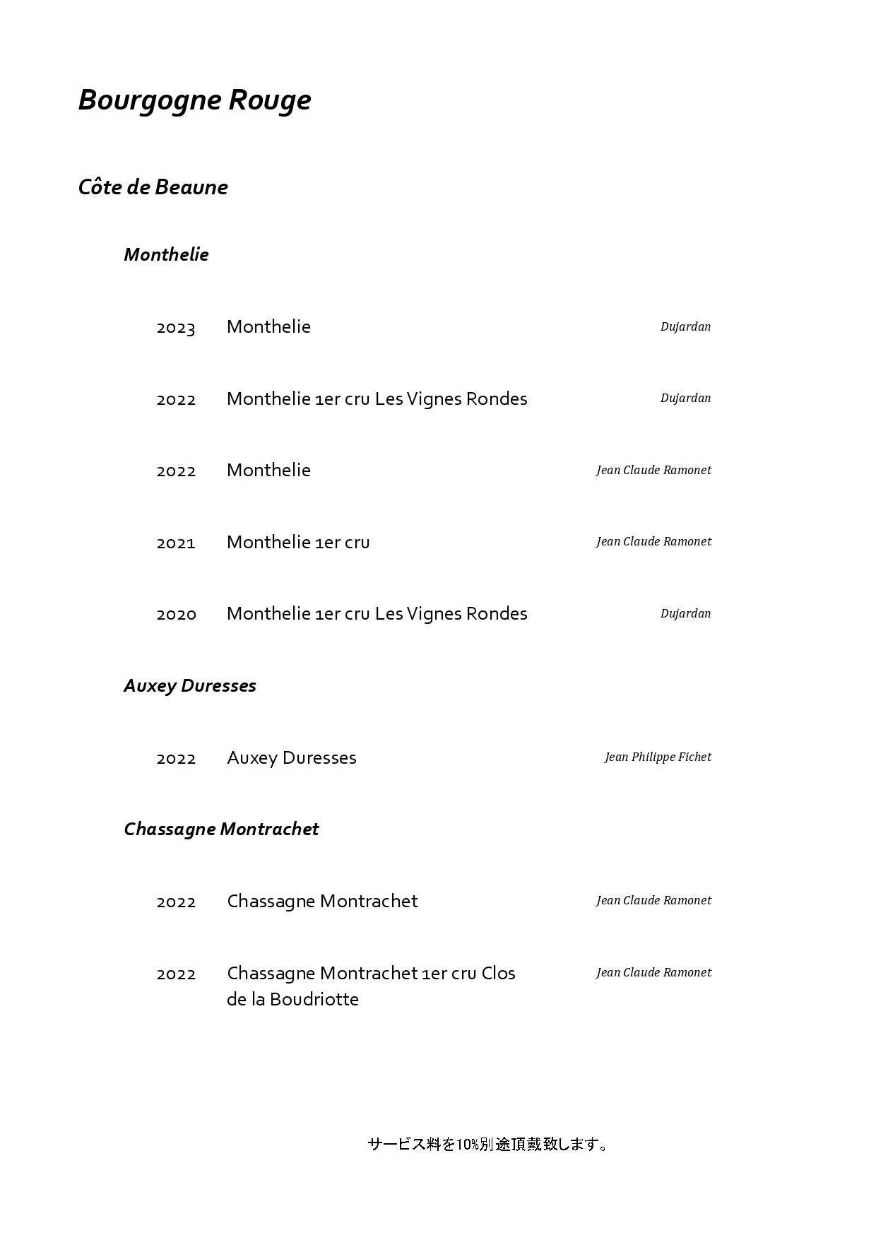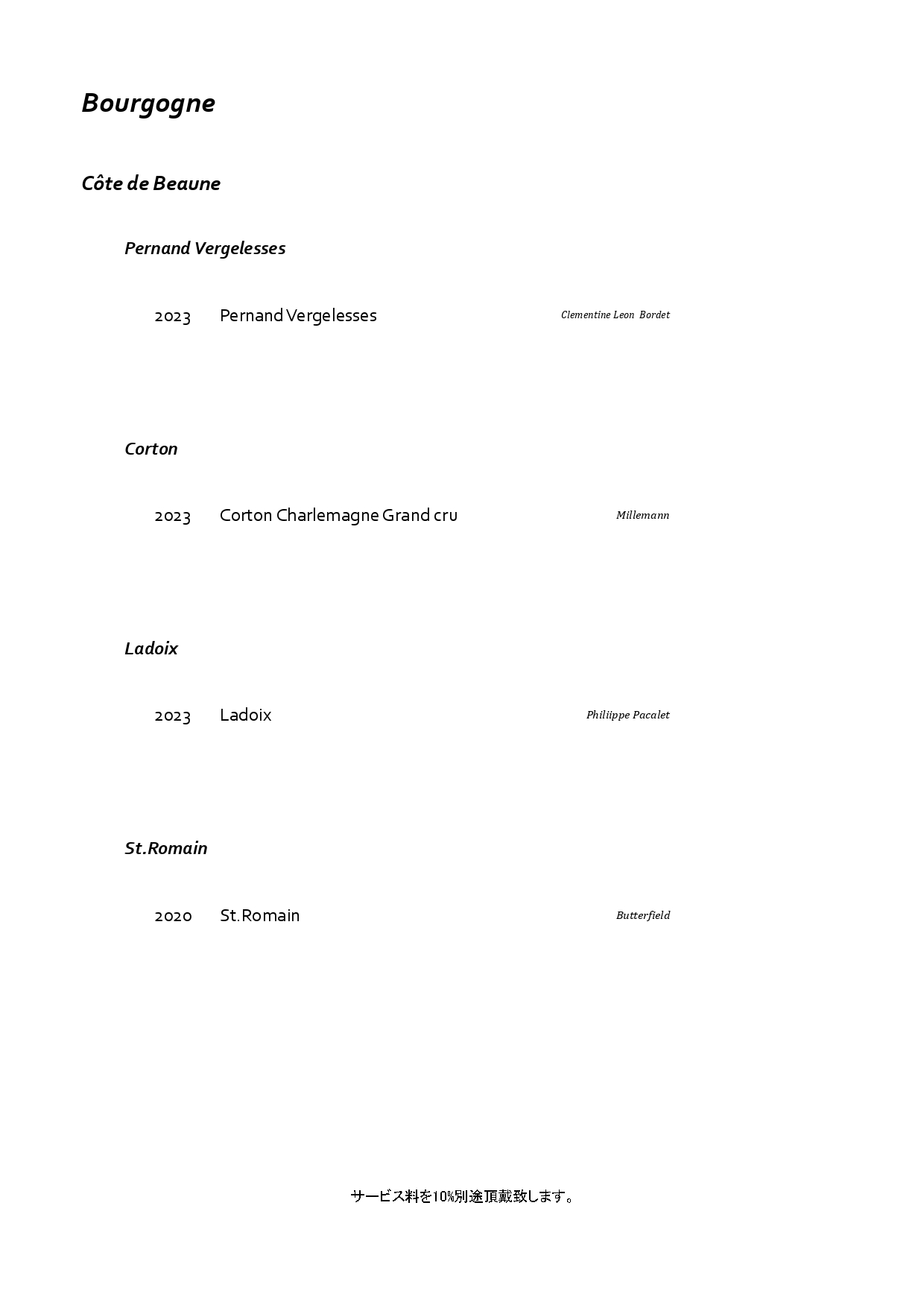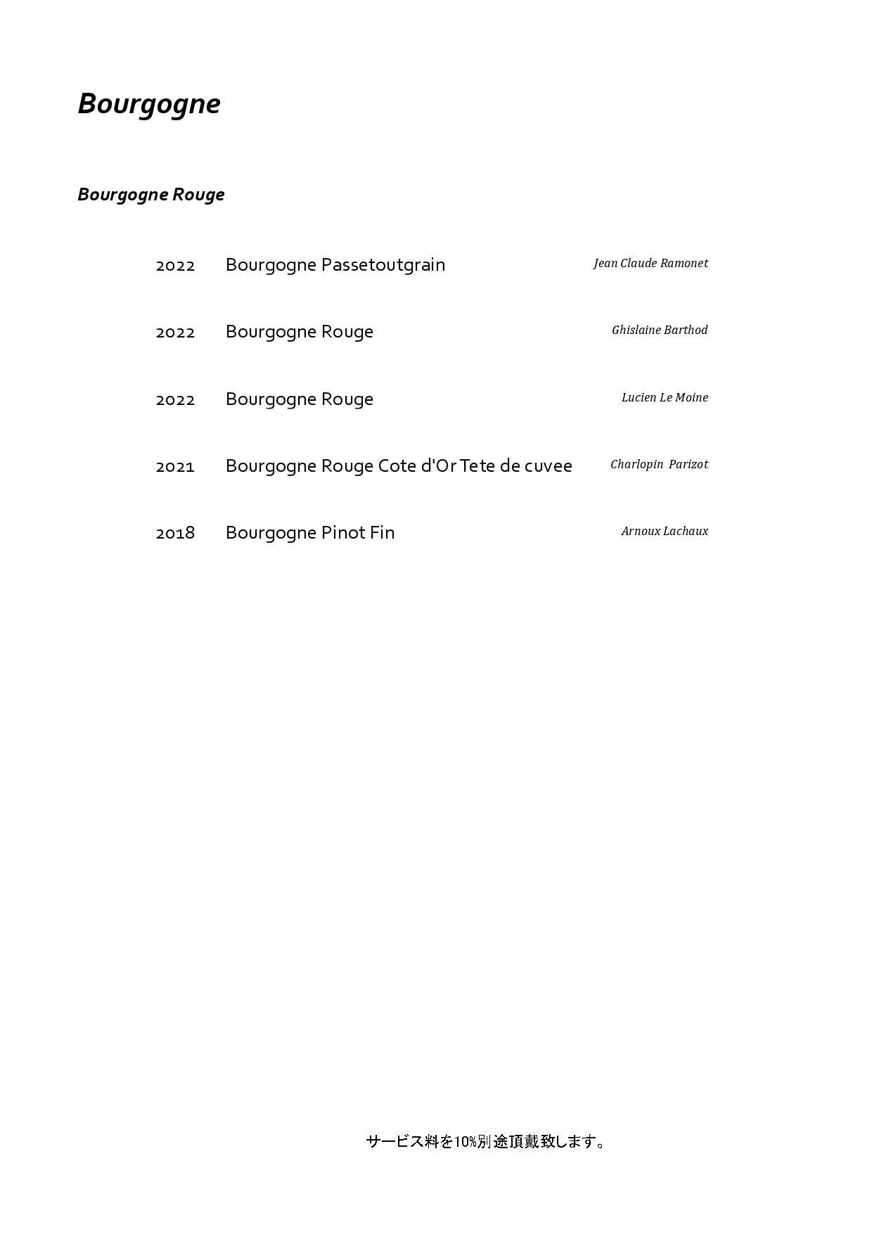 フランス・ブルゴーニュを中心に構成した特別なペアリング。