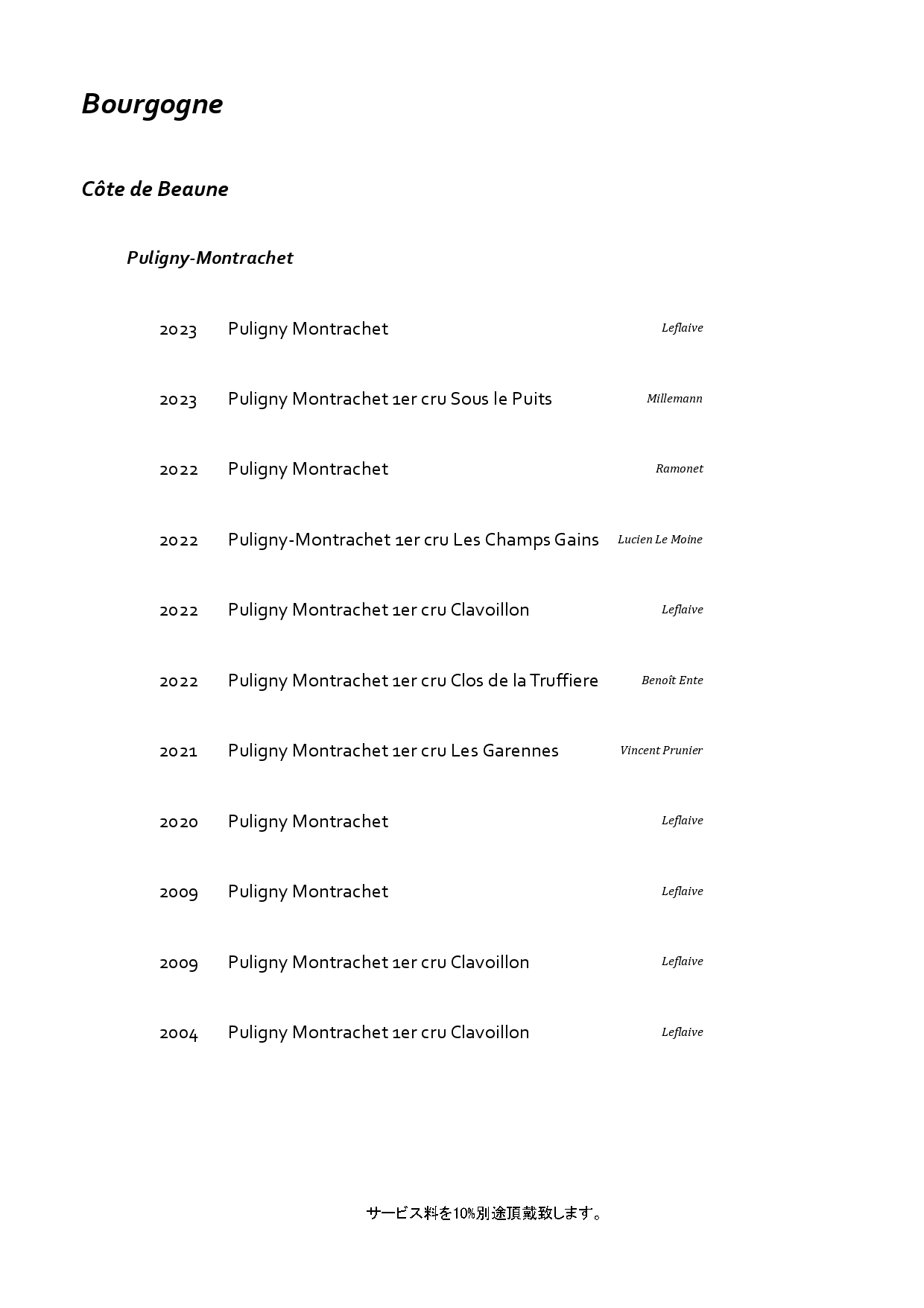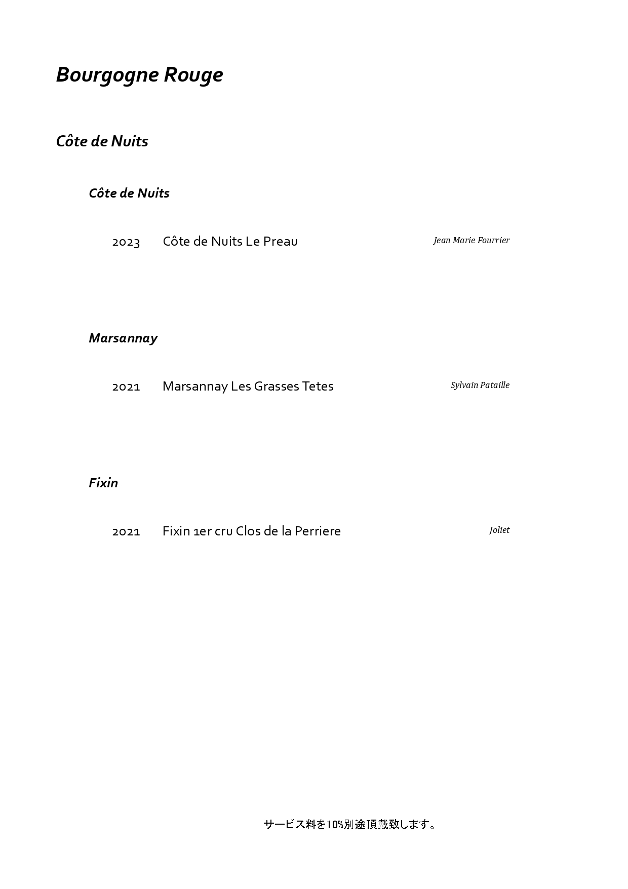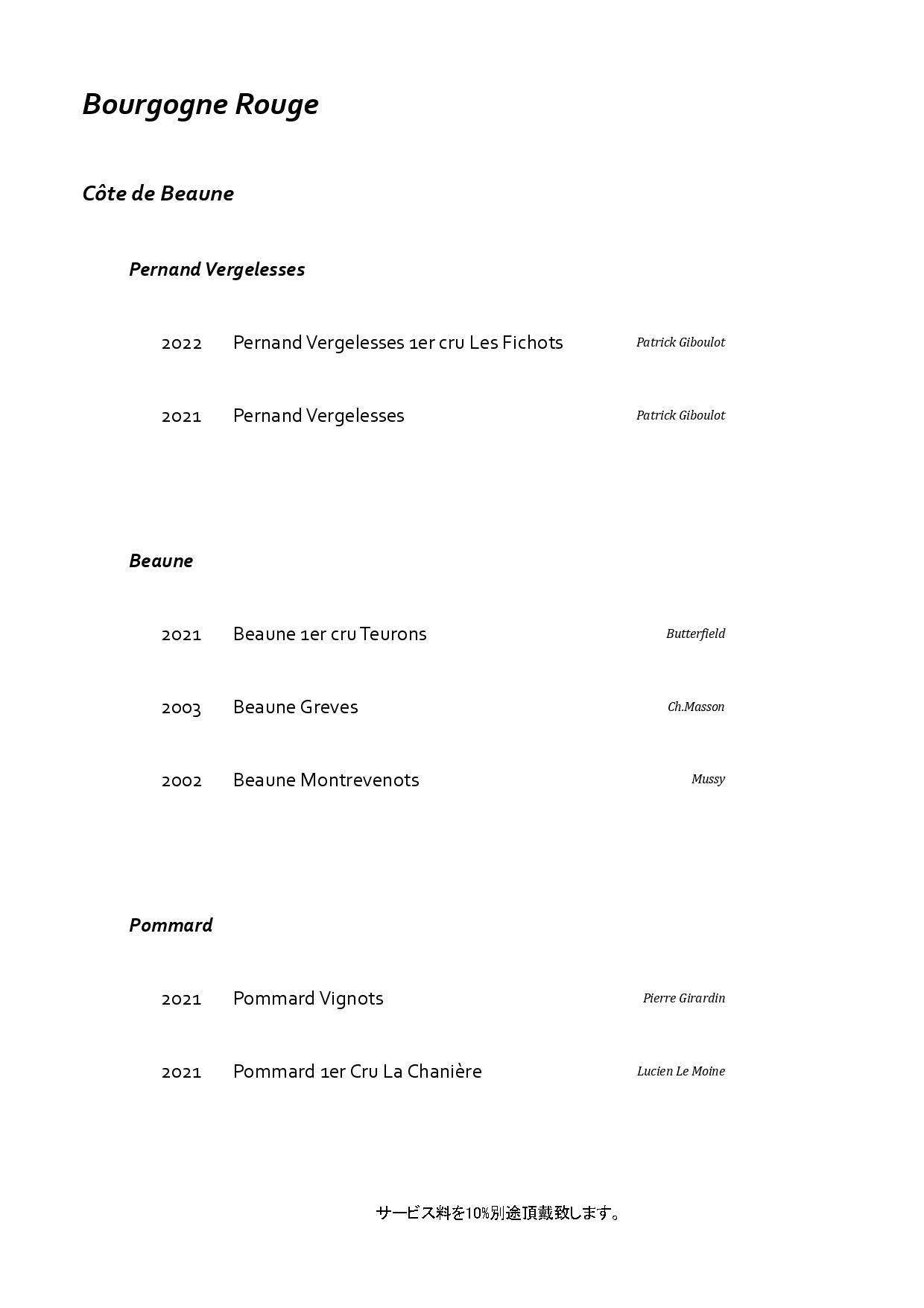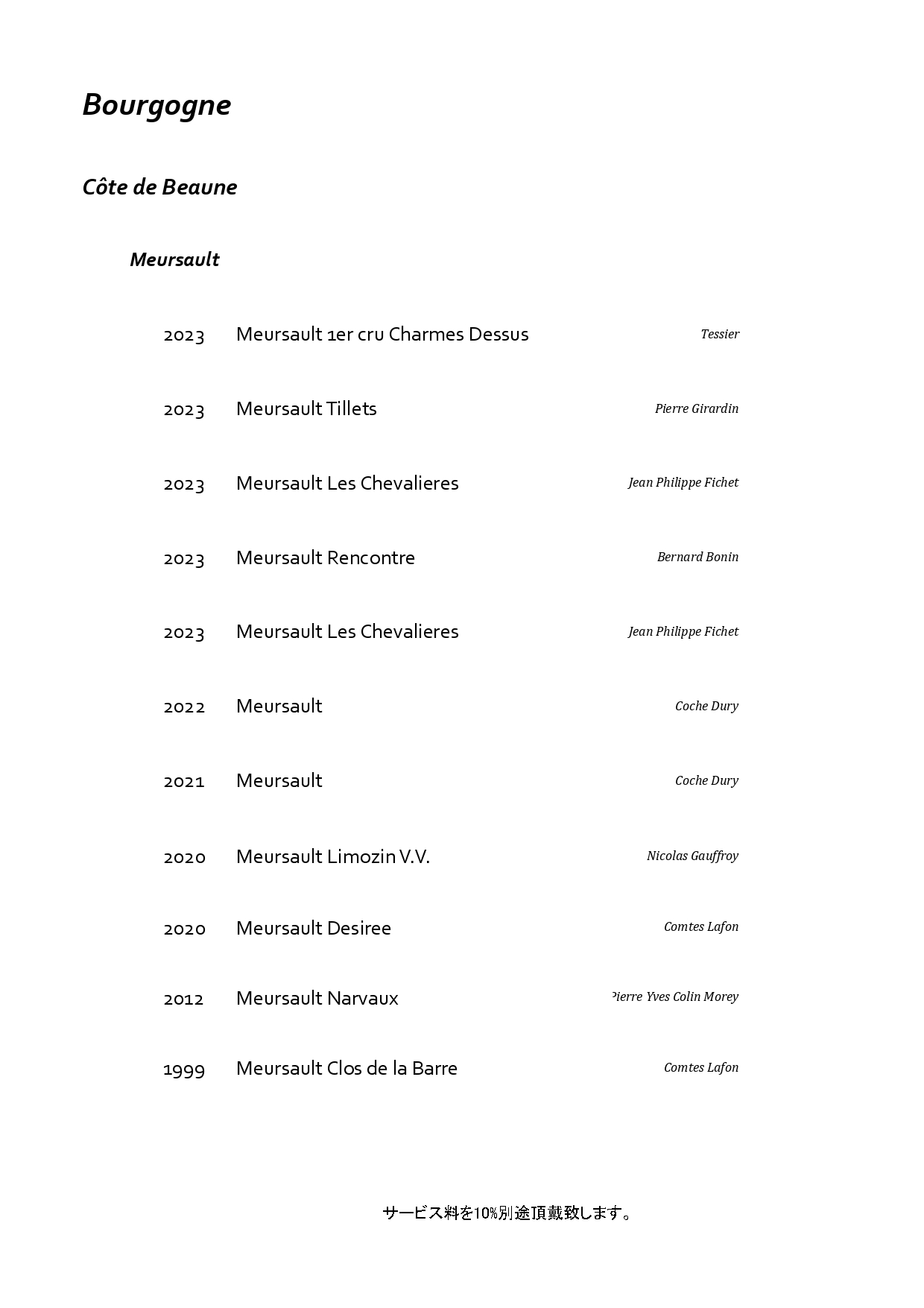 フランス・ブルゴーニュを中心に構成した特別なペアリング。