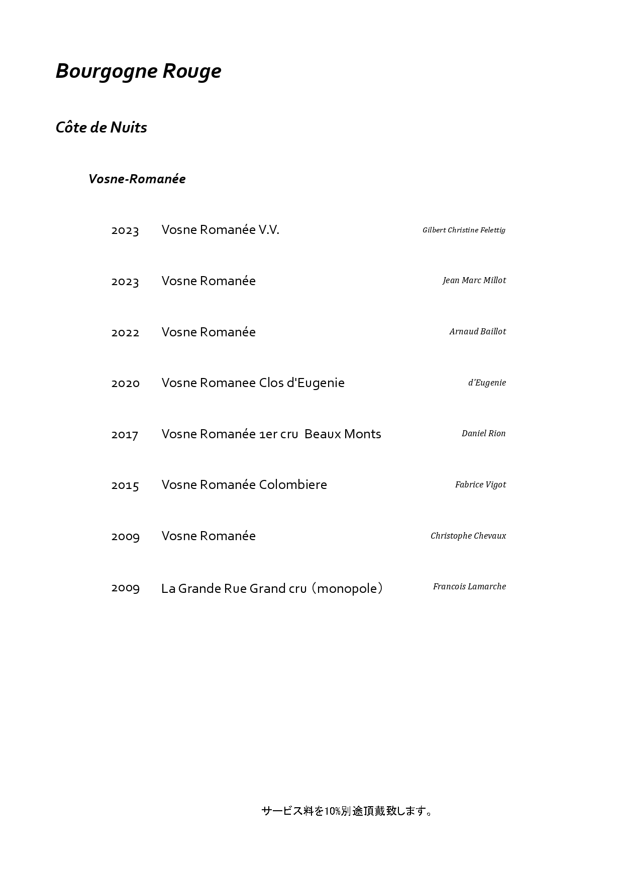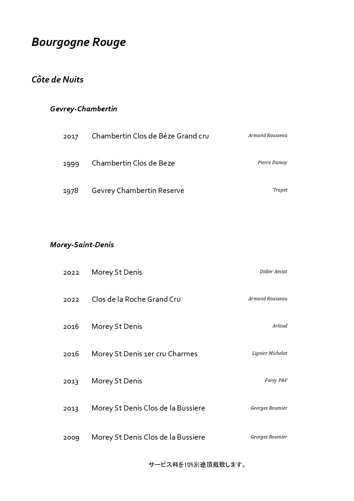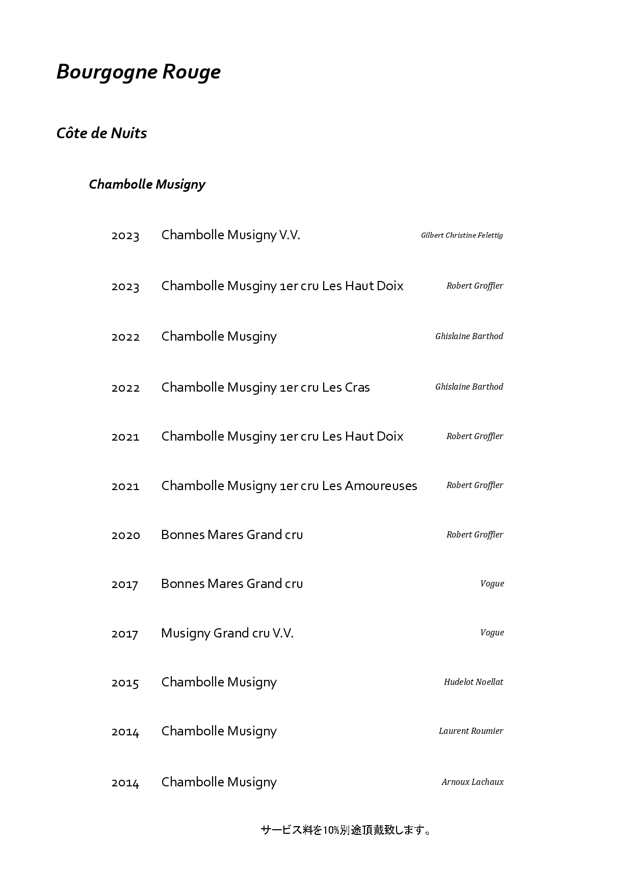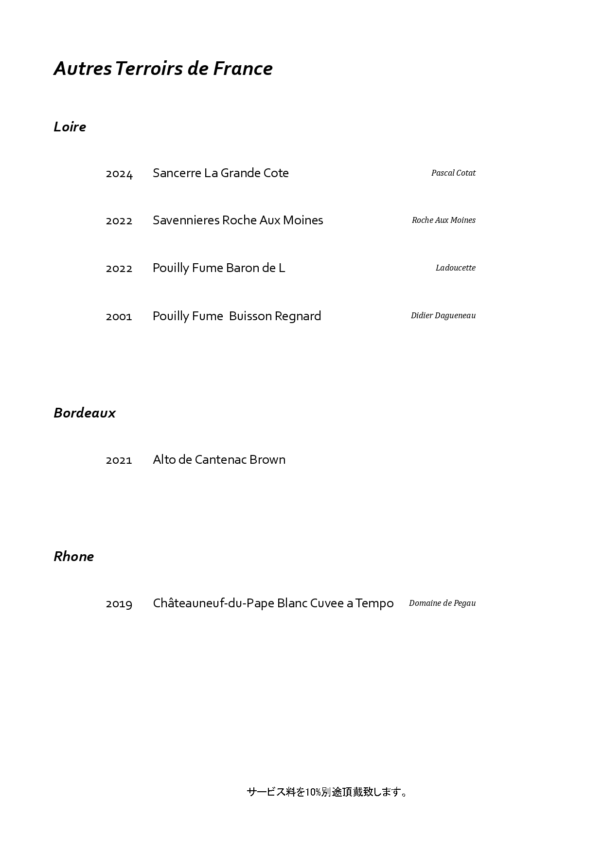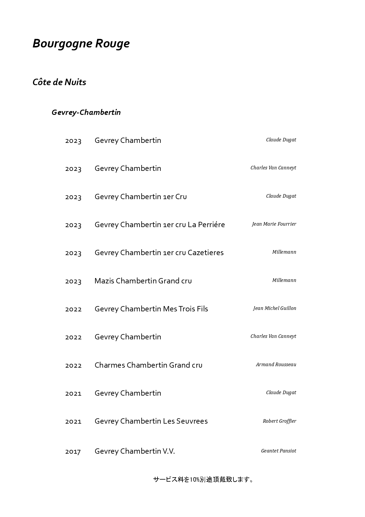 フランス・ブルゴーニュを中心に構成した特別なペアリング。