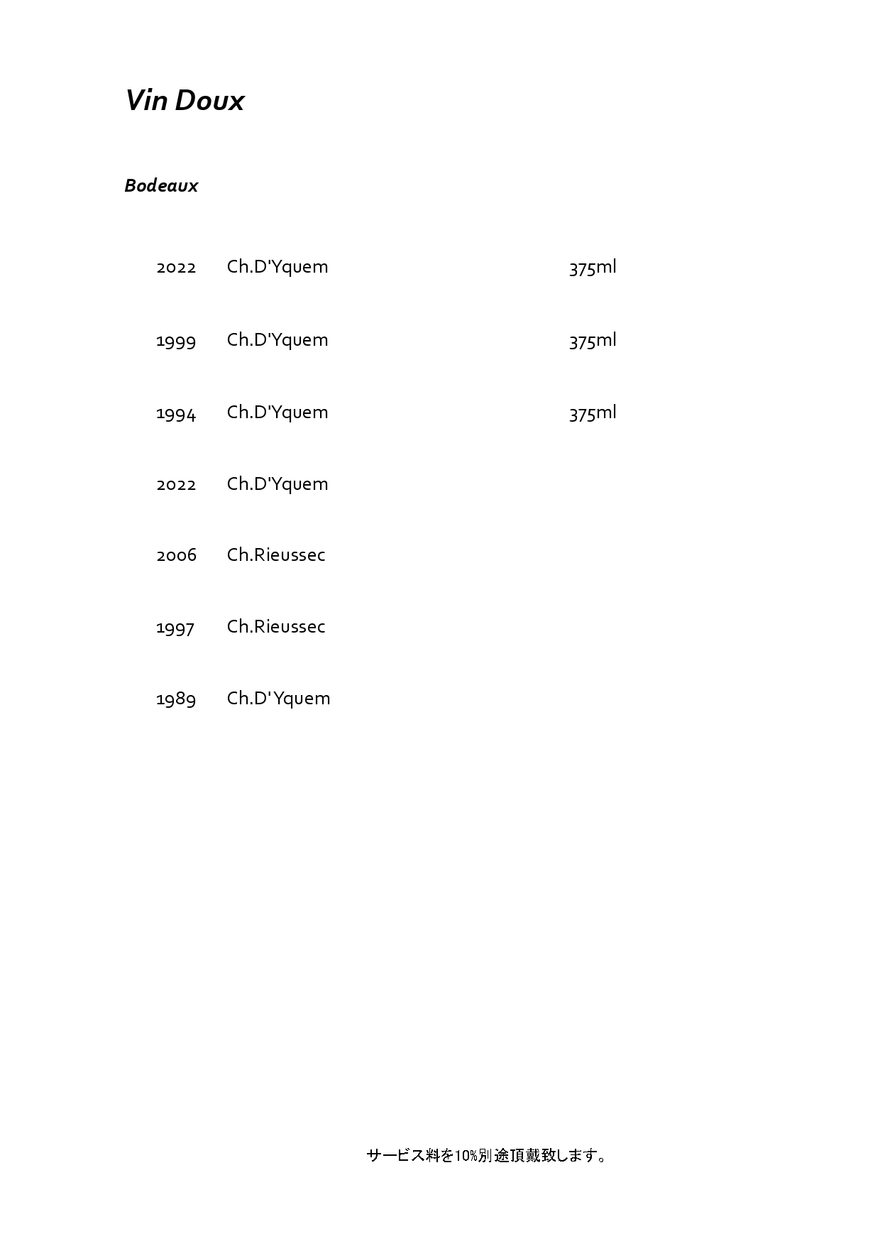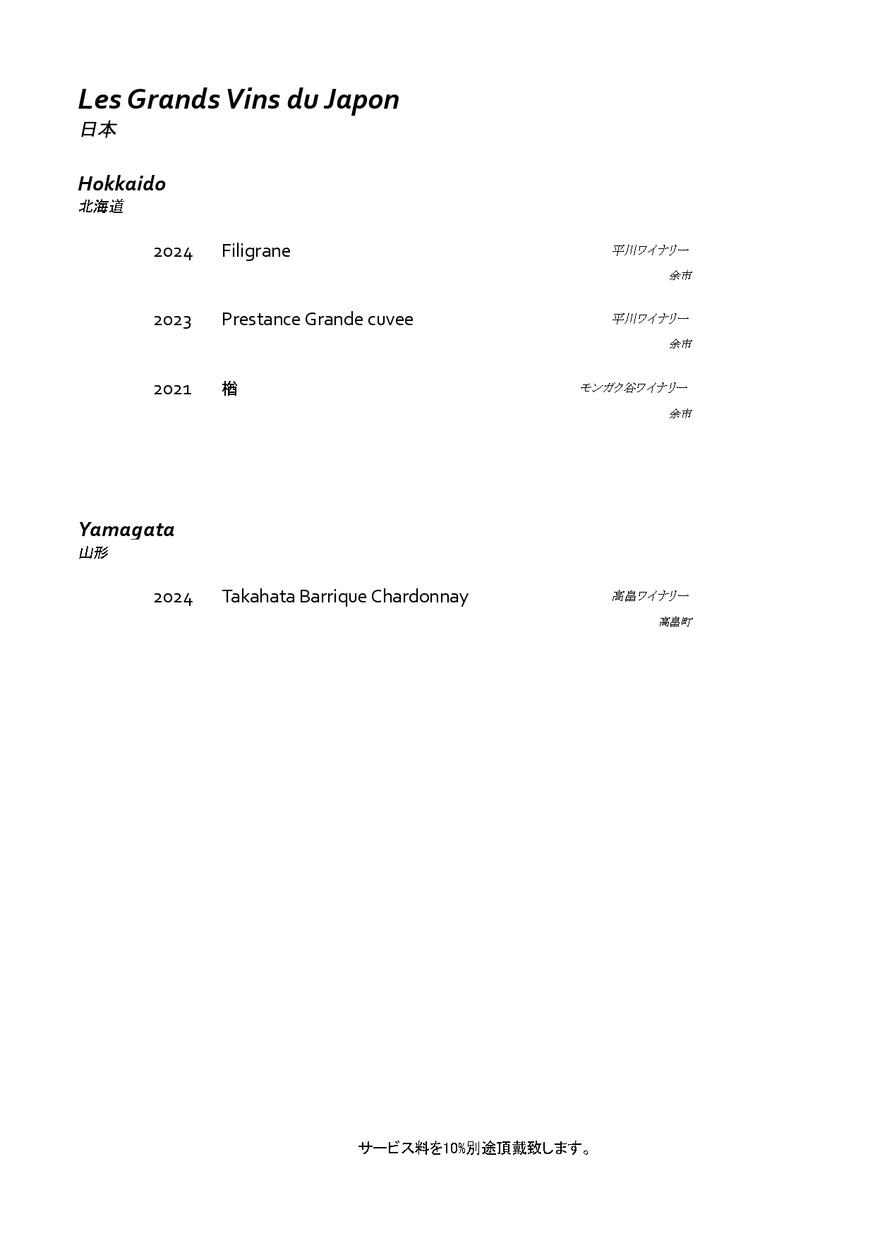 ワインリストのご案内