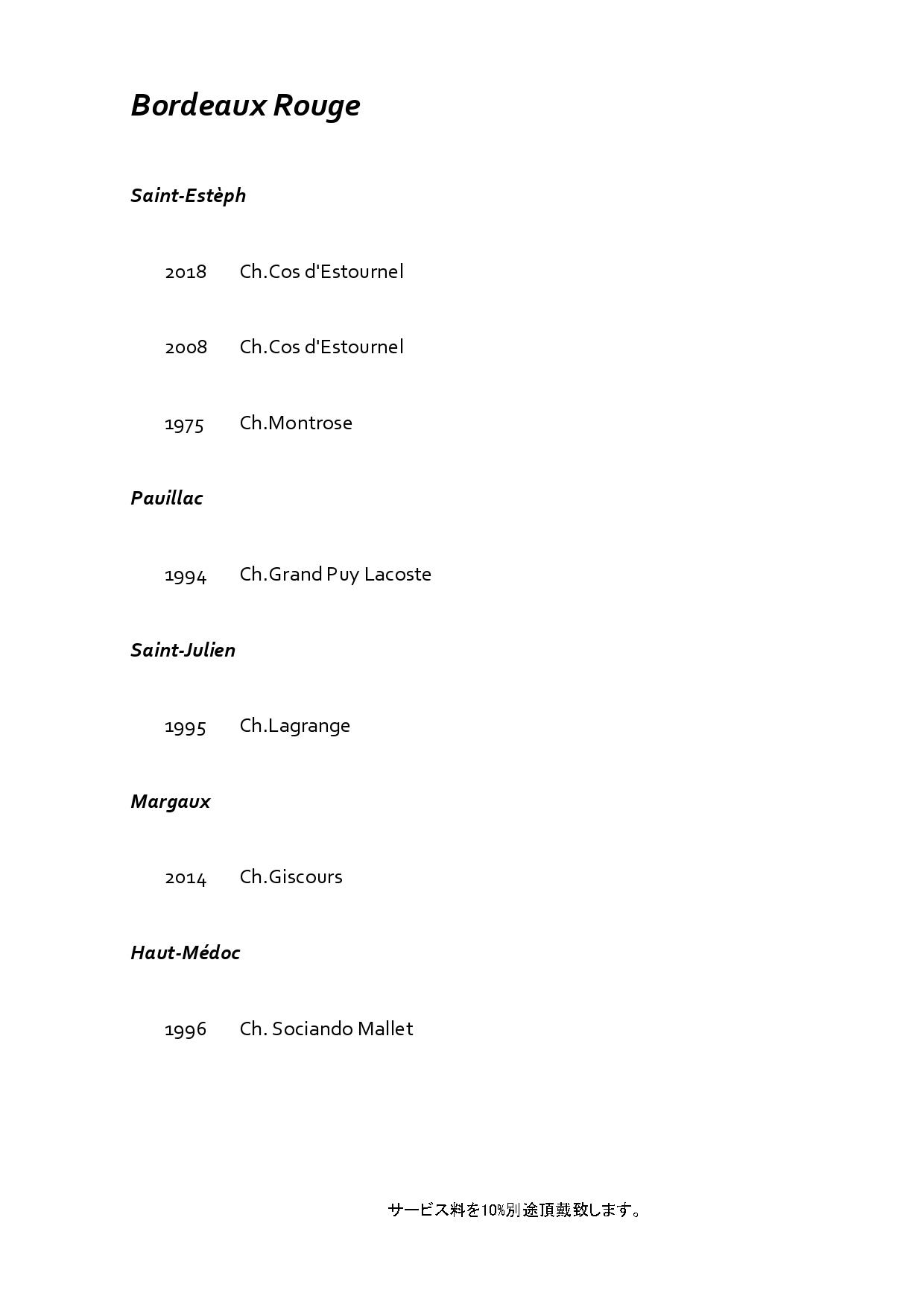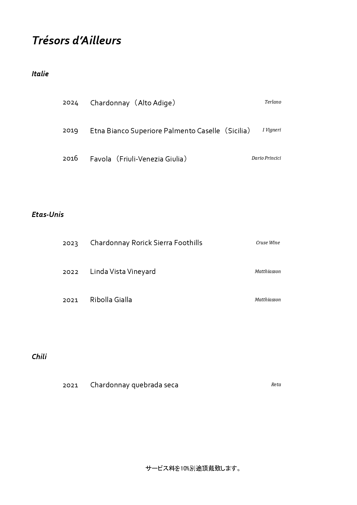 グラスワインは 2,500円〜5,000円前後を中心に、品質と満足度を重視したラインナップとなっております。
